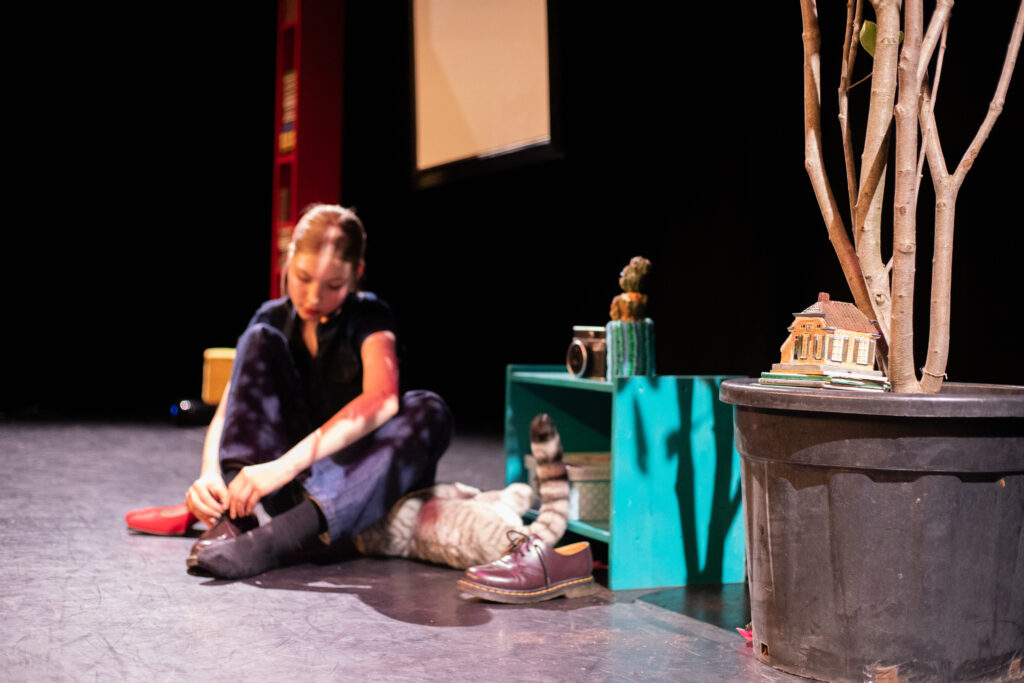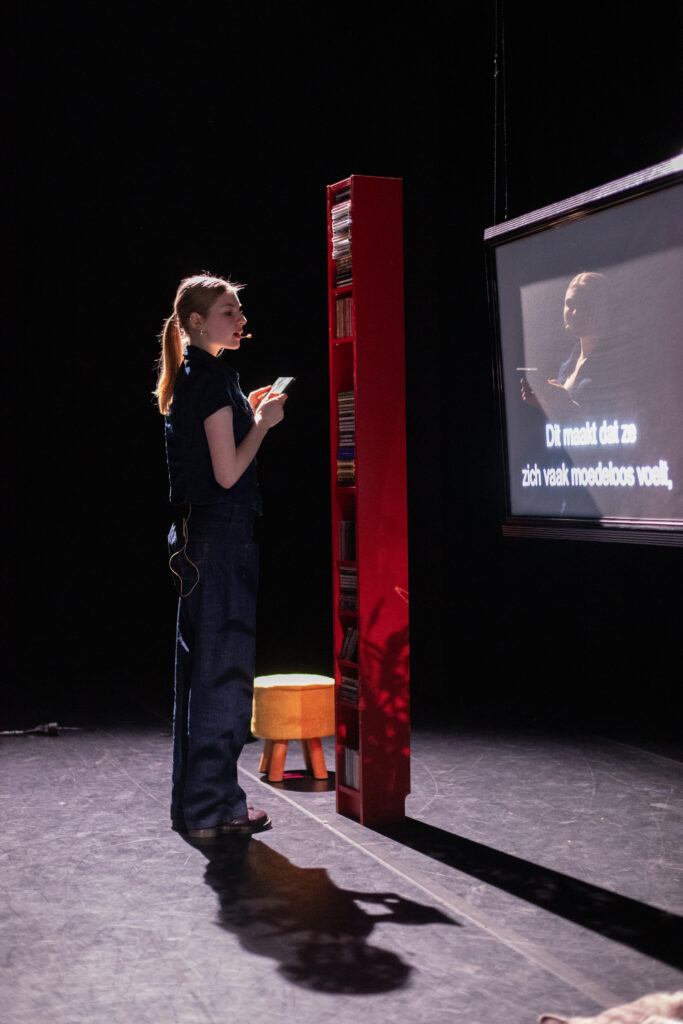 Een voorstelling over een meisje dat een tijd lang niets hoefde. Liever niets voelde. I am in control. Over niet willen tanken op het moment dat je benzine bijna op is. Over het uitpakken van je tas en het tegenkomen van een heel zielig katje. Ik ga een heel zielig verhaaltje vertellen.